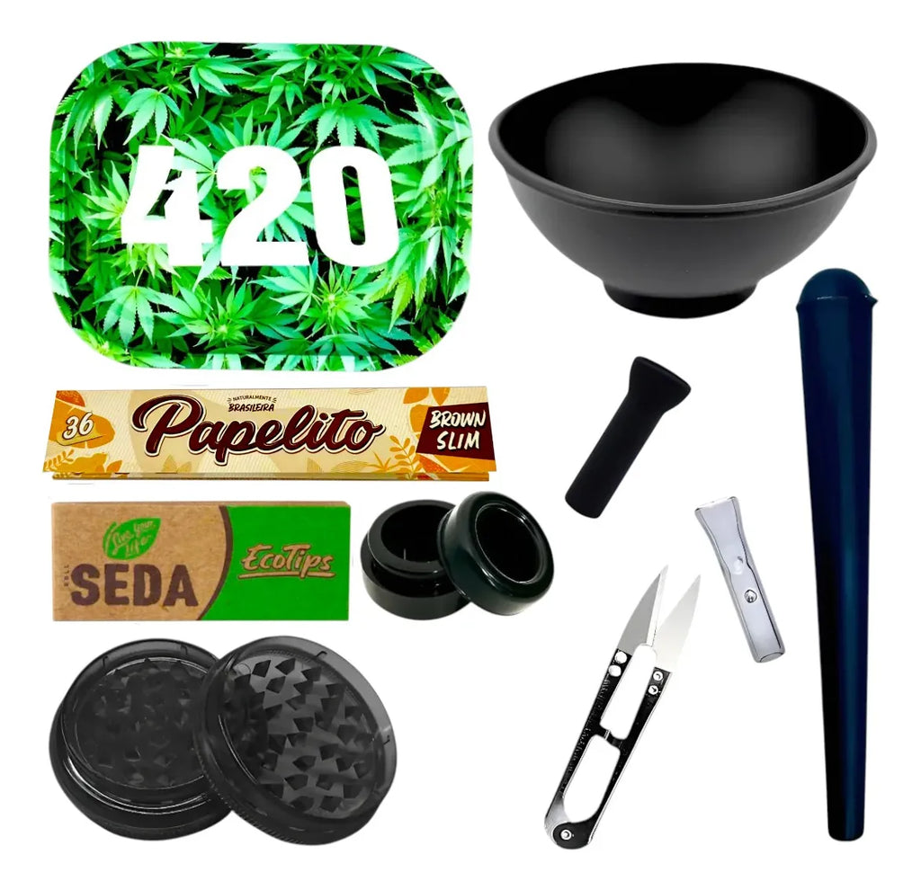 Prepare-se para uma experiência de fumo única e sofisticada com o nosso Kit 10 Peças, cuidadosamente elaborado para atender a todas as suas necessidades. Com uma variedade de produtos de alta qualidade e renome no mercado, garantimos uma sessão excepcional.