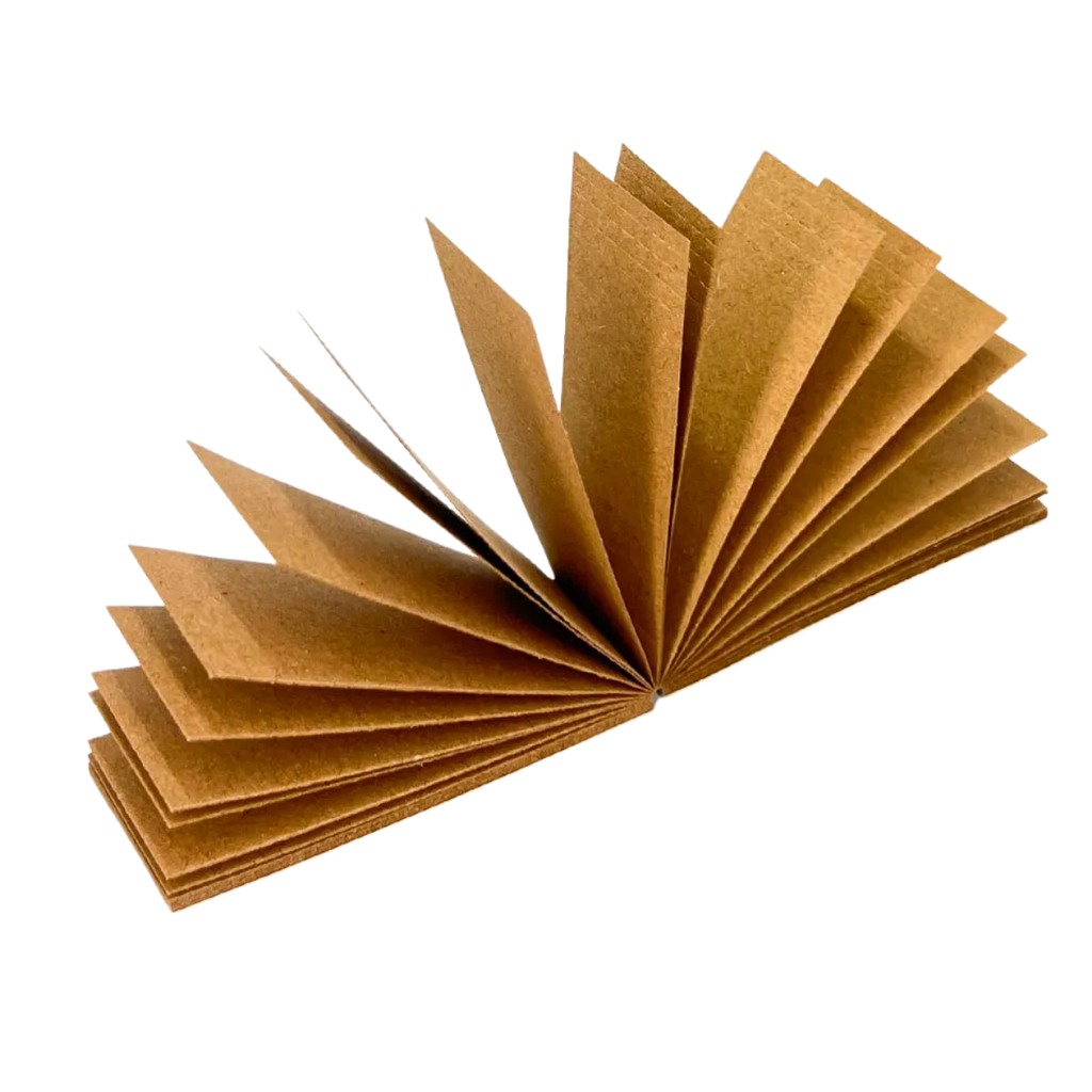 A linha Sadhu Evening é produzida com papel marrom não branqueado, preservando o aspecto natural das fibras e reduzindo o impacto ambiental, ideal para quem busca autenticidade e sustentabilidade.