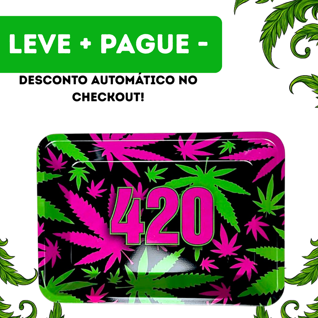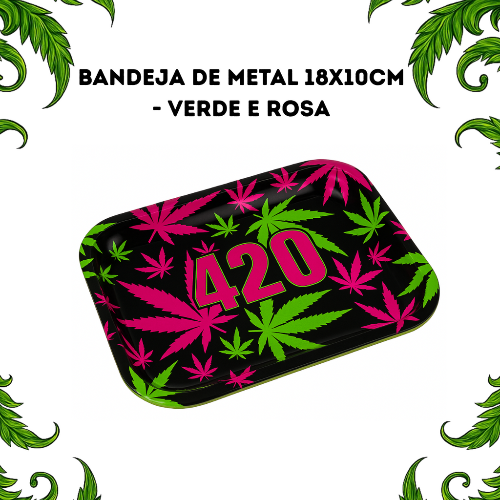 A Bandeja de Metal 18x10cm – Modelo 420 Verde e Rosa é perfeita para quem busca praticidade, estilo e organização na hora de bolar. Com estampa vibrante e moderna, é um acessório indispensável para qualquer tabacaria, headshop ou uso pessoal.