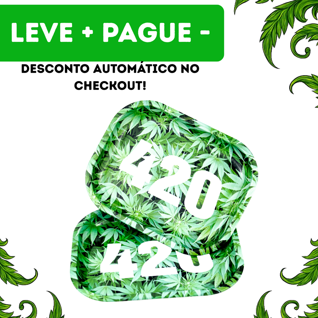 A Bandeja de Metal 18x10cm – Modelo 420 Verde é perfeita para quem busca praticidade, estilo e organização na hora de bolar. Com design moderno e estampa temática, é um acessório indispensável em qualquer tabacaria, headshop ou para uso pessoal.